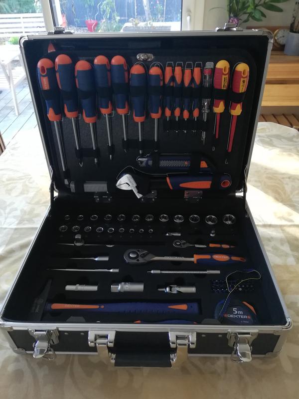 Enfin reçue ! La valise à outils 130 pièces DEXTER est très pratique et bien organisée. Je recommande !